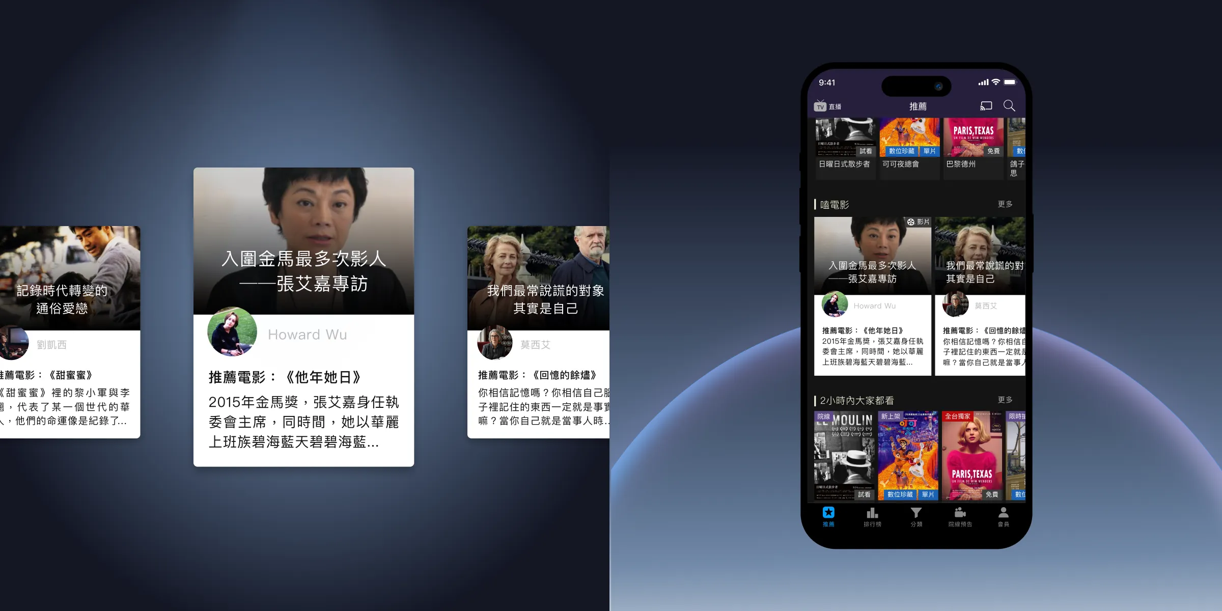 單純播放影片已不足以長遠的維繫用戶關係,因此我們規劃影評專區、個人化片單、社群互動與歷史紀錄,讓影片不只是觀看,更能激發分享、討論與持續探索的動機。透過排行榜、文字雲推薦與上架通知等快速入口,用戶能更輕鬆掌握最新熱門內容,延長停留時間並提升回訪率。